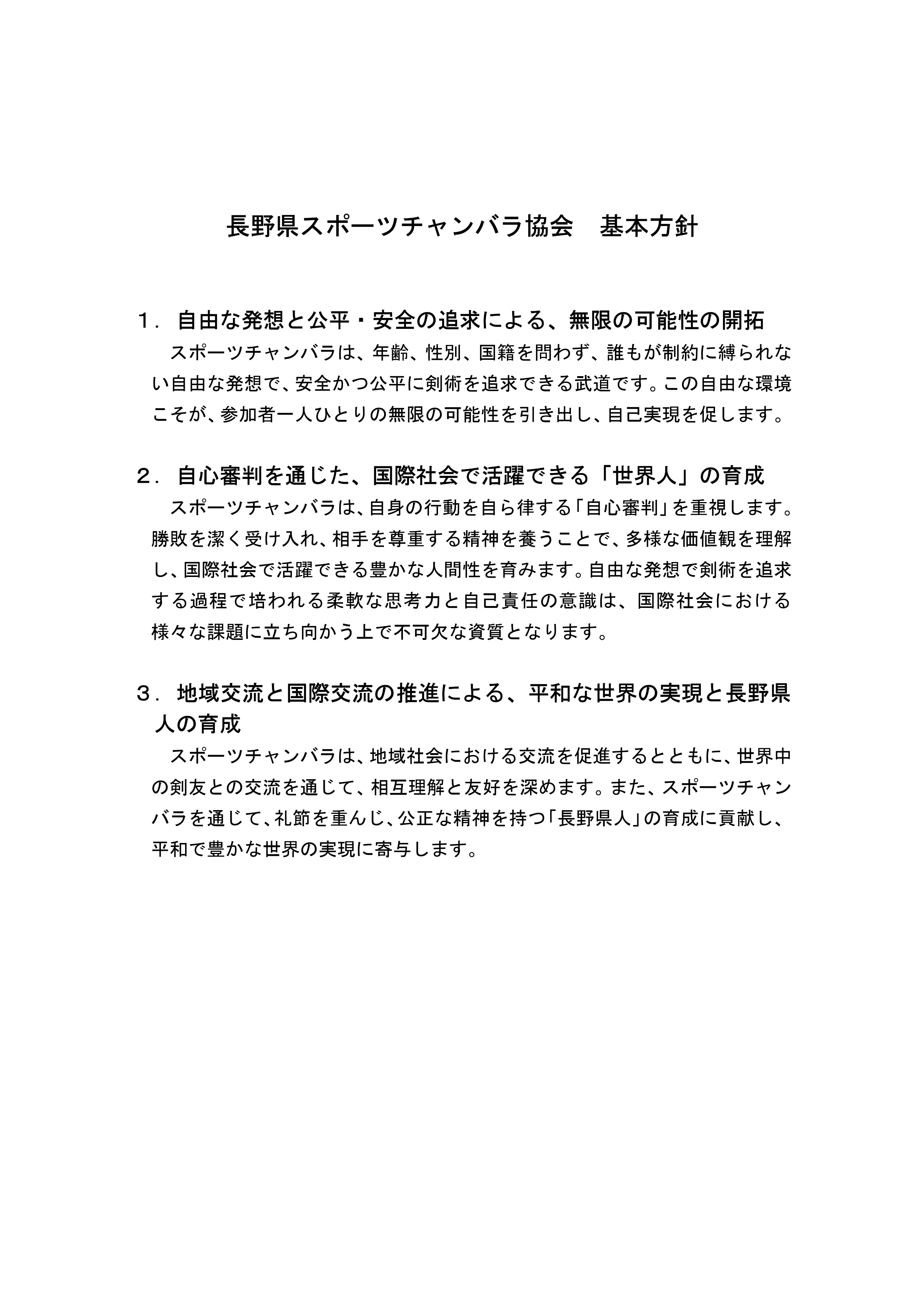 「長野県スポーツチャンバラ協会 基本方針.pdf」 全1ページ 画像クリックで拡大もできます