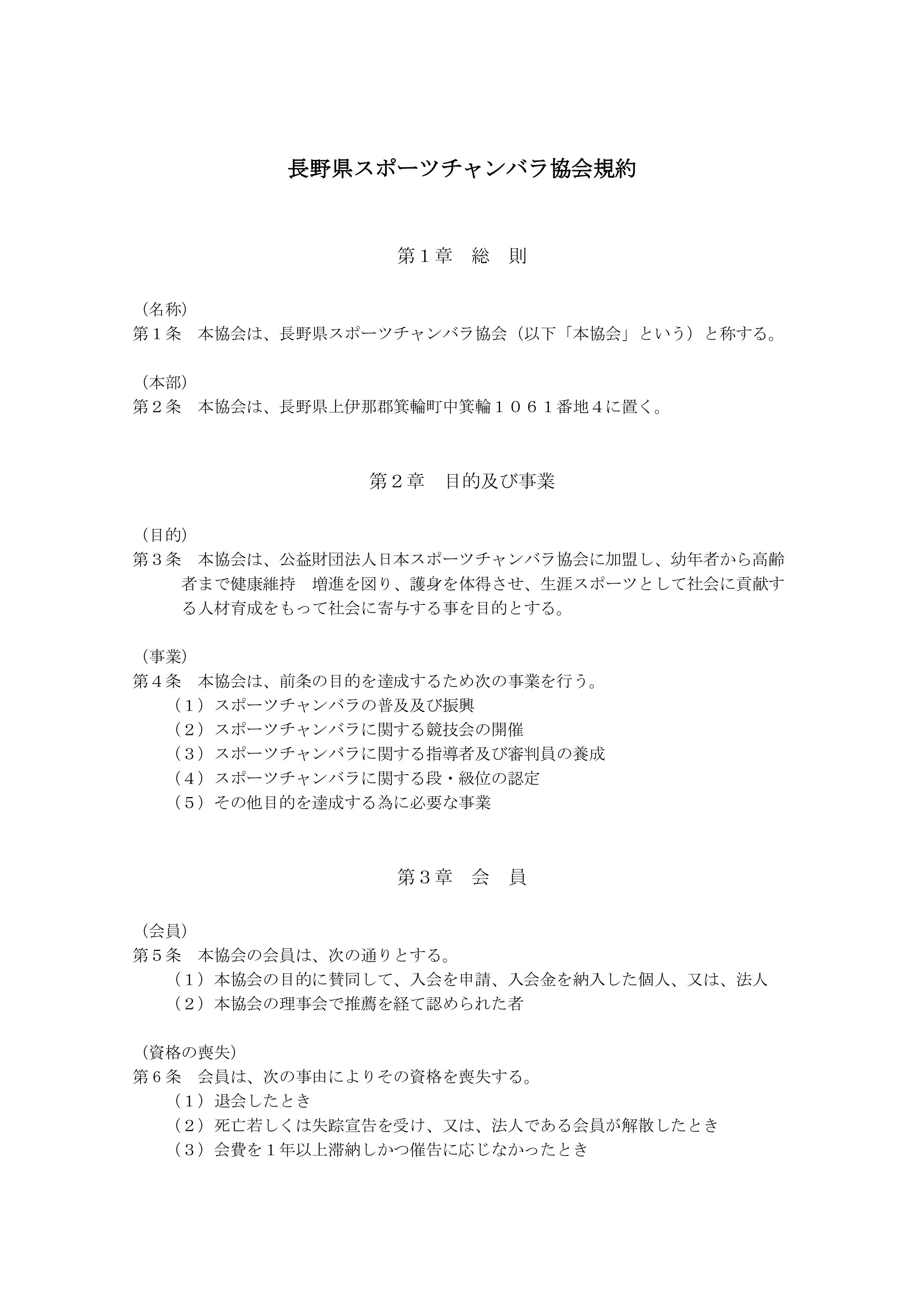 「長野県スポーツチャンバラ協会 規約.pdf」 全5ページ 画像クリックで拡大もできます